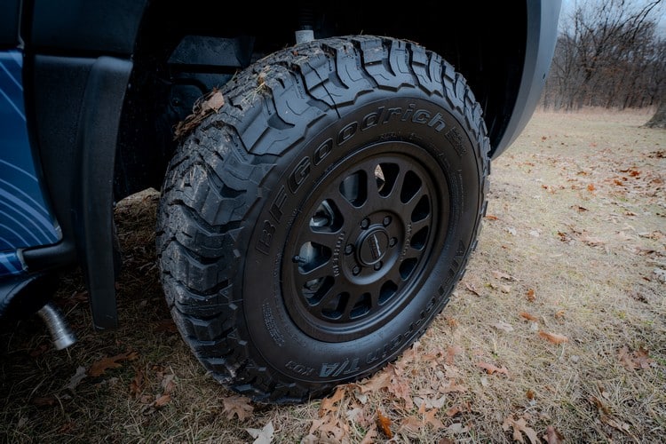BFG T/A KO3 275/70r17 Off-Road Tires and Method Wheels with Agile no-rub fender kit.